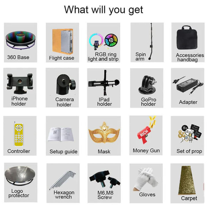 Large Number of 360 Accessories, Easy to Install: Elevate your photo booth experience with our extensive range of 360 accessories.