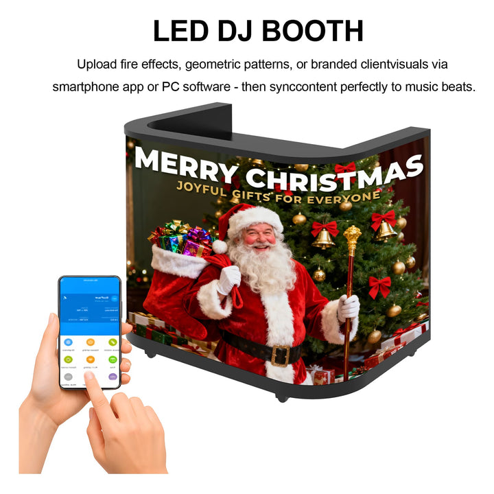 📱 Versatile Remote Control – Control the DJ booth table from your computer, smartphone, or iPad. With support for USB, SD card, Wi-Fi, and 4G, updating content is fast and effortless.