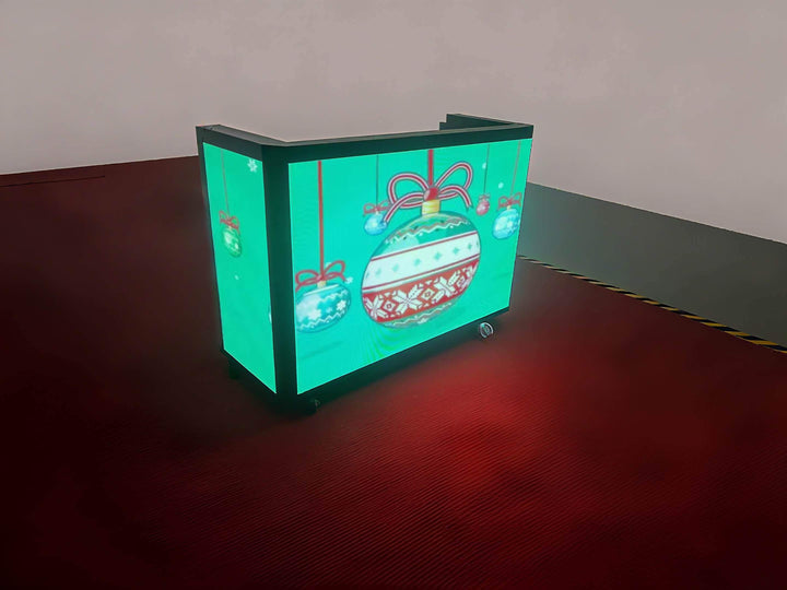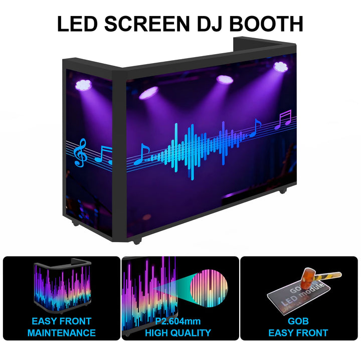 What truly sets this DJ booth apart is its high-resolution LED screen seamlessly integrated across the front and sides. With vivid brightness and rich color accuracy, it creates a mesmerizing visual experience that syncs perfectly with your music.
