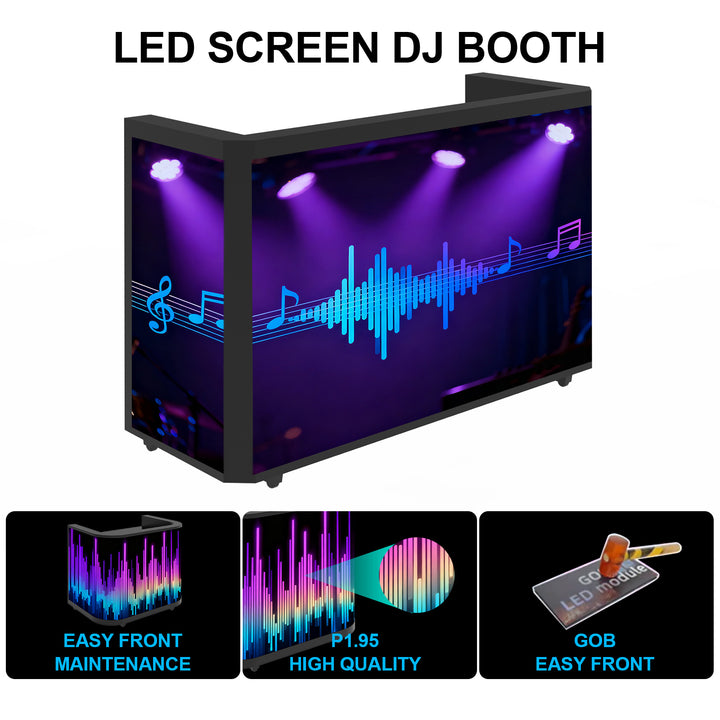What truly sets this DJ booth apart is its high-resolution LED screen seamlessly integrated across the front and sides. With vivid brightness and rich color accuracy, it creates a mesmerizing visual experience that syncs perfectly with your music.